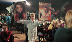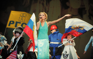 Настоящее шоуНа сцене – группа «Самоцветы», и сразу после их выступления начинается самая сложная и ответственная часть конкурса – визитная карточка. Претенденткам предстояло показать на сцене себя, свой вуз и специальность, на которой они учатся. При этом блеснуть интеллектом, отвечая на каверзные вопросы членов жюри. Под номером 1 на сцену вышла Дарья Анциферова из МЭСИ. Ее выступление походило на эпизод бразильского карнавала. Следующая – студентка МИЭМП Влада Лабунская. «А кем ты будешь, когда закончишь институт?» – спросил шоумен Александр Ревва. «Открою свою школу фигурного катания. Я – мастер спорта, а институт мне поможет в области экономики, менеджмента и права». Затем на сцене появился коллектив из текстильного университета – девушки в невообразимых нарядах, самый шикарный – на Галине Абдыкеровой. Эпатажный парикмахер Жорж Ровелс, который должен был задать вопрос, горячо похвалил девушек: – Не нужны нам европейские дизайнеры, когда есть вы! Запомнилось выступление Христины Прохоровой из Академии водного транспорта. На огромном экране во время ее номера плескались волны, а сама Христина и ее коллектив были в морской форме. «Чего я ожидаю от своей профессии? Встретить любимого капитана и плавать с ним по всему свету». Визитка Марии Лопаткиной из Тимирязевки сопровождалась активной поддержкой зала. Около сотни интернациональных болельщиков в майках с принтом Марии, с флагами и растяжками скандировали «Номер 5!» и «Марина!», тем самым гарантировав ей титул «Мисс Поддержка вуза». А на сцене ансамбль играл на русских народных инструментах музыку David Guetta, звучал рэп об университете и красоте, а члены жюри в конце выступления получили хлеб и соль. – Что делать с нашим сельским хозяйством? – спросил один из членов жюри. – Как что, развивать! Если мы забудем о сельском хозяйстве, то забудем нашу историю! Следующие две участницы – Ольга Волкова из МПСИ и Юлия Лукинова из МГУТиУ показали удивительно похожие номера. Они предстали залу в образе бизнес-леди, а на сцене в этот момент сражались неандертальцы, и даже появился настоящий мамонт. Обе, как оказалось, в будущем планирую стать управленцами. Вообще, на «Мисс Студенчество 2010» почти все участницы учились на управленцев того или иного рода. Под номером 8 на сцену вышла студентка ГУУ Карина Титова с песней «Я – река». Во время исполнения номера подол ее платья красиво развевался на всю сцену. Выступление удалось, в зале долго не стихали овации, и Марк Тишман даже предложил Карине попытаться пройти отбор на «Евровидение». Не сомневаясь, что Карина тоже пошла по пути управленца (ГУУ все-таки), члены жюри с сарказмом спросили ее о специальности. Но ответ прозвучал неожиданный: – Учусь на эколога-природопользователя. Следующей выступала Азиза Раупова из РГУ ФКСТ. Вопрос от жюри задал Иван Москвин: – Спортивный вуз, спортивная специальность, а в жизни кто?.. – Моя специальность – режиссирование спортивных мероприятий, и я хочу режиссировать Олимпиаду Сочи-2014. Студентка МИИГАиК Цветана Омельчук в прекрасном белом платье играла на скрипке среди молодых людей с земными сферами в руках. «Кем хочу стать? Управленцем!» Выступление Татьяны Корольковой из ветакадемии запомнилось особенно. На сцене состоялось дефиле собачек в джинсовой одежде от одного из спонсоров. Под «суеверным» 1