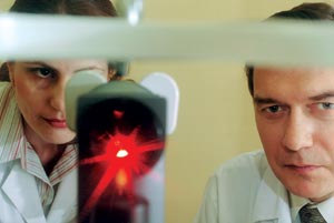 Воочию наблюдать картины тренировок – занятие не для слабонервных. Опишу только некоторые подсмотренные нами сцены. Перед началом занятий сотрудница «VETLAB» достает из холодильника бело-голубые шарики и, разморозившись под струей воды, они на глазах превращаются в глаза. Каждому вручается порция кружочков, которые укладываются в специальные отверстия в муляже человеческого лица. И, глядя в микроскопы, будущие доктора начинают колдовать над своими «глазуньями» тоненькими инструментами, почему-то напомнившими мне столовые приборы. Наблюдая за этими манипуляциями, невольно вспоминаешь телевизионное шоу «Фактор страха», организаторы которого любили «угощать» героев свиными глазами и прочими неприглядными яствами. «Давайте я сниму эпителий, – предлагает девушка в белом халате нашему фотографу, нацелившему на «ее» глаз, – так красивее будет!» Да уж, красота из ряда вон: на больших экранах над доской можно рассмотреть все в мелочах. И порадоваться за этих будущих волшебников, которые еще только учатся. Береги глаз смолоду– Если вспомнить, что посредством зрения мы получаем 80 процентов информации о мире, то можно ли говорить, что глаза самый перегруженный работой орган? – мы вновь возвращаемся к разговору с доктором Пантелеевым. – В принципе, это правильно. Но… Акт зрения не замыкается только формированием образа на сетчатке. Дальше информация поступает через проводящие пути в мозг, а мозг начинает анализировать. Мы сталкиваемся с пациентами, имеющими с детства очень слабое зрение. И зачастую помочь этим людям мы не можем. Но добиваются они в жизни ощутимых результатов: заканчивают школы, институты, некоторые защищают диссертации. Параллельно мы сталкиваемся с пациентами, у которых при 50-процентном или 80-процентном зрении жизнь останавливается… Поэтому не только зрение определяет жизнь человека. Важны ведь не те 80 процентов информации, которые мы получаем благодаря зрению, а то, как мозг анализирует ее и КАК мы к ней относимся. Когда я учился в школе, к нам в класс приводили слепоглухого человека по фамилии Суворов. С ним был переводчик, и они разговаривали, выстукивая азбуку Морзе на ладонях. Но даже с такой патологией он был сотрудником института нейрофизиологии. Писал стихи. – Посоветуйте нашим читателям, что надо делать и чего следует избегать, чтобы не стать пациентом офтальмологического центра? – Если человек здоров, если он высыпается, занимается спортом, хорошо питается, то и с глазами у него будет все нормально. А если он сидит за компьютером с утра до вечера, то в такой ситуации проблемы могут возникнуть не только со зрением глазами, но и с головой. Смотреть на солнце без солнцезащитных очков нельзя – иначе будет ожог. Перед затмением и по телевидению предупреждают, в газетах пишут: «Не смотрите на солнце. Купите специальные очки или закоптите стеклышко». И все равно каждый раз поступают пациенты, которые получили ожоги сетчатки. Кстати, после этого могут начаться непоправимые изменения, и человек начнет терять зрение. Совет один: надо просто разумно себя вести. – А если зрение уже нарушено? – Тогда нужно придти к доктору. Например, в МНТК. Здесь специально выстроена диагностическая линия, пройдя которую пациент сможет получить исчерпывающую информацию о состоянии своего зрения и с помощью специалистов определи